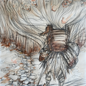 Se trata de las ilustraciones originales realizadas por Fernando Calderón para la edición de 1982 de “MITOS Y LEYENDAS DE CANTABRIA” de Manuel Llano. Edición preparada y cuidada por Ángel Herrero y realizada por A.D.I.C (Asociación para la Defensa de los Intereses de Cantabria).